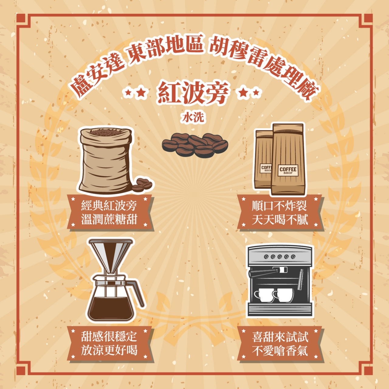 養豆建議: 水洗紅波旁在 10~14 天會更穩定,甜感也會更明顯。建議收到後稍微放一下再喝。