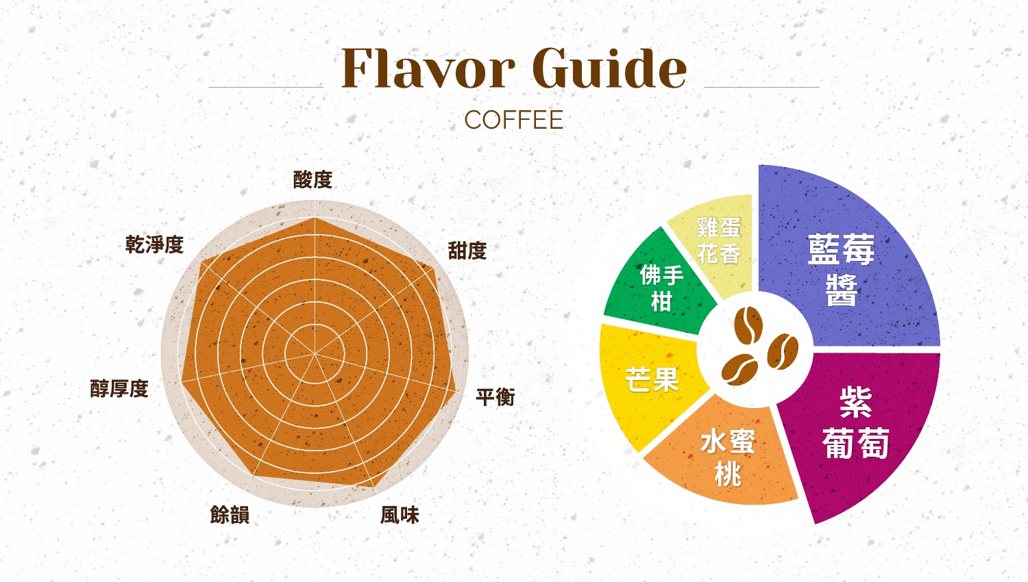 風味主調: 藍莓醬、紫葡萄、水蜜桃、芒果、佛手柑、雞蛋花香