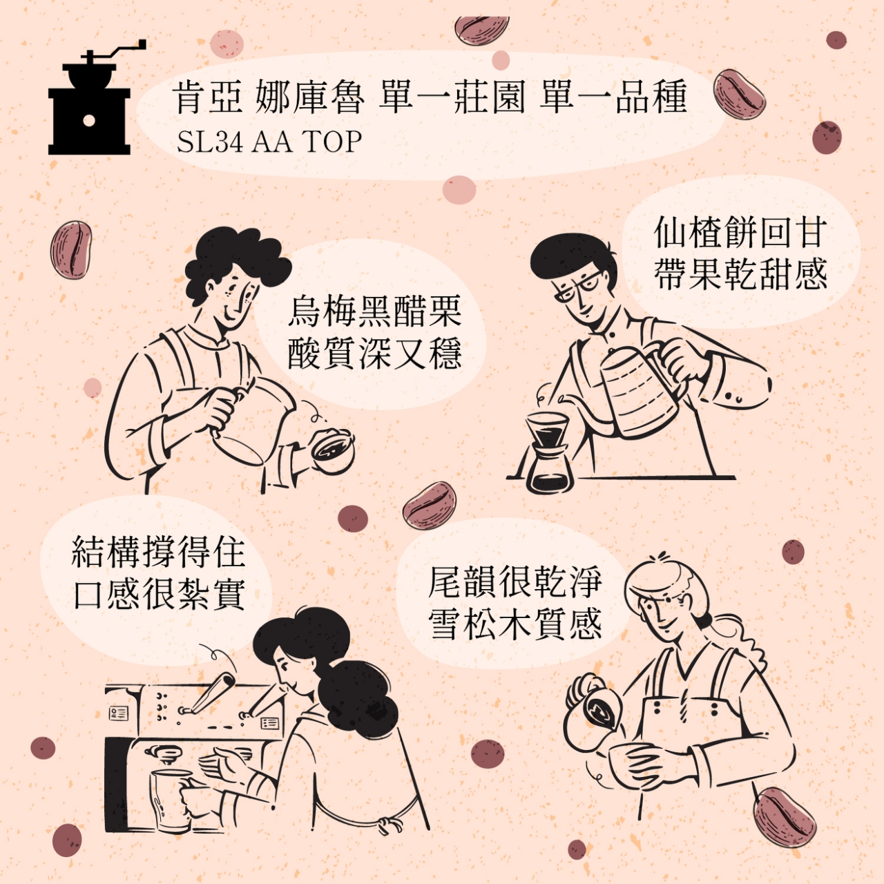 作為我們 2026 年推出的第一支肯亞,它把肯亞該有的亮度留下來,也把結構顧好了。 如果你喜歡肯亞,但不想只喝到酸,或是你其實怕亮酸會太刺激,那這一支 SL34,可以試試。