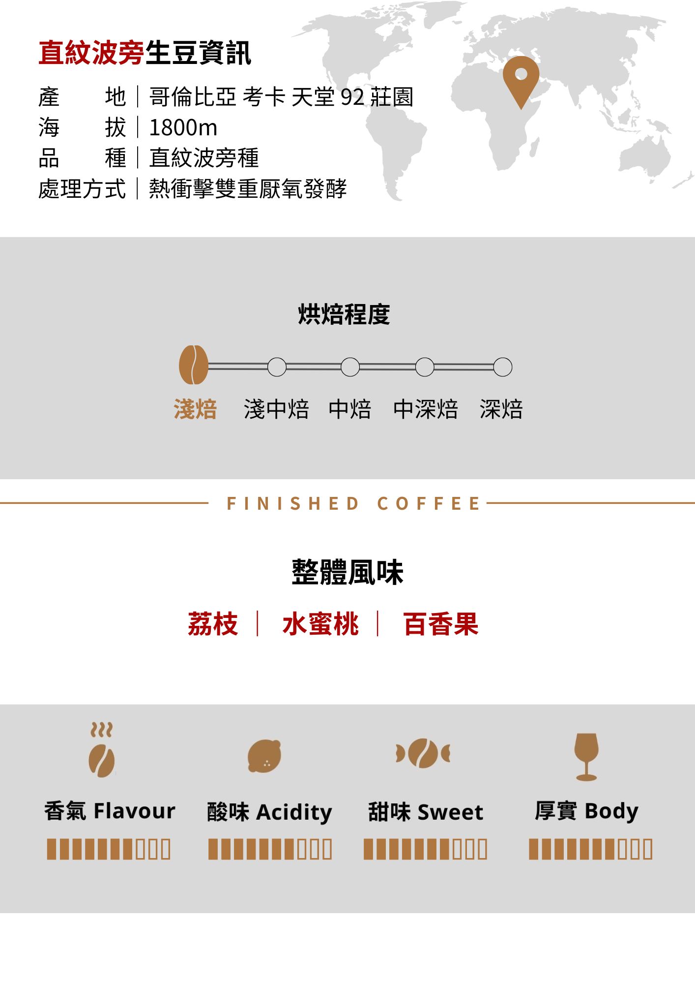 烘焙度: 淺烘焙