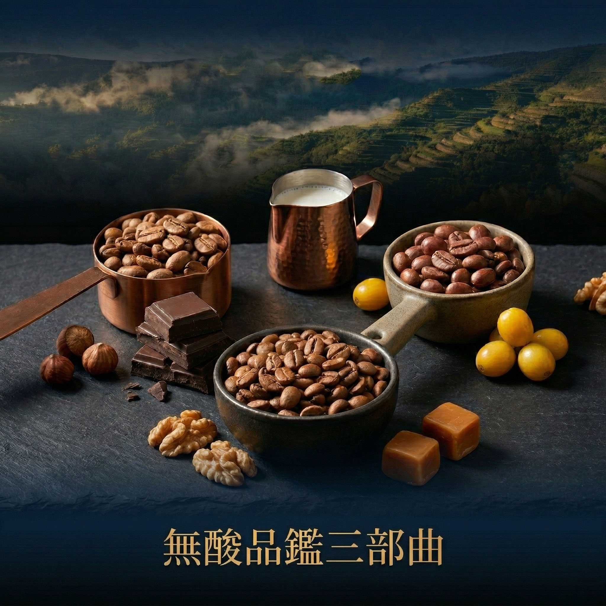 這就是為什麼 1980 CAFE 決定推出「無酸品鑑三部曲」。我們精選了三支底蘊極佳的中 / 中深焙名豆,透過台南澄森獨家的紅外線慢焙工藝,熱能直達豆芯,徹底拿掉了咬喉嚨的尖銳酸味與表面焦燥感,只留下純淨的焦糖甜、烤核桃與深邃可可香。